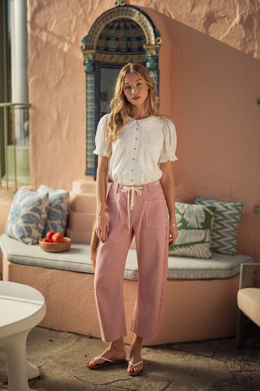 Red Pinstripe Barrel Leg Pants (S - 2XL)
