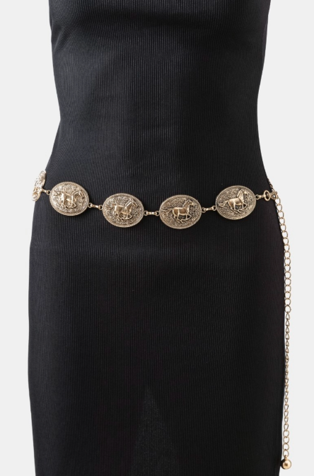Western Horse Engraved Oval Chain Belt (2 Colors)