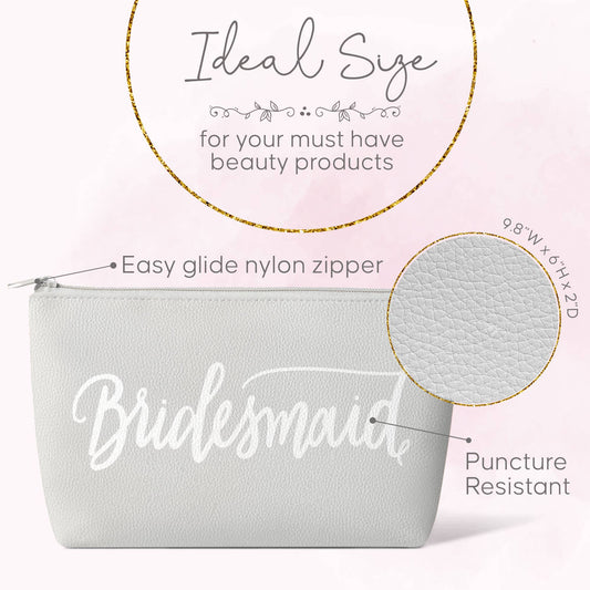 "Bridesmaid" Makeup Bag (Grey Faux Leather)