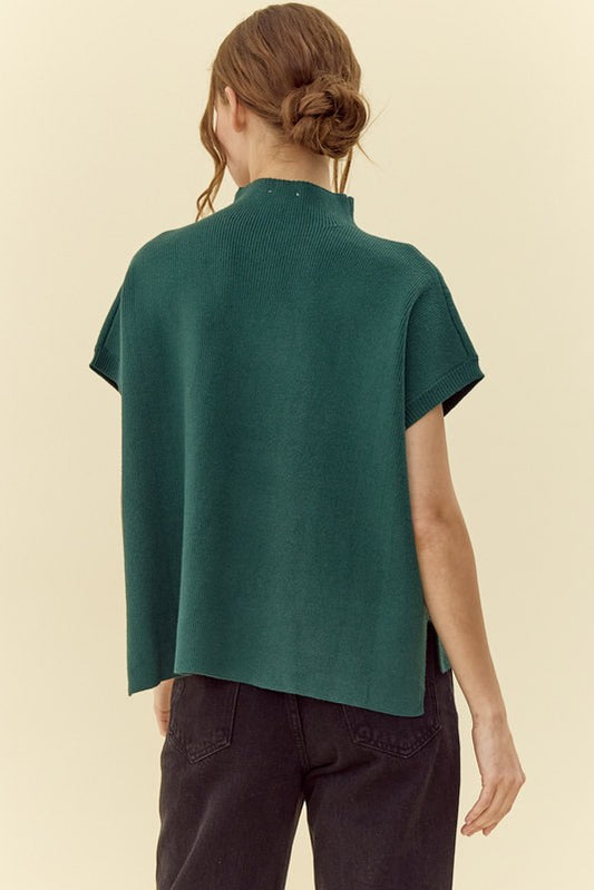 Ribbed Knit Short Dolman Sleeve Sweater (Hunter Green)