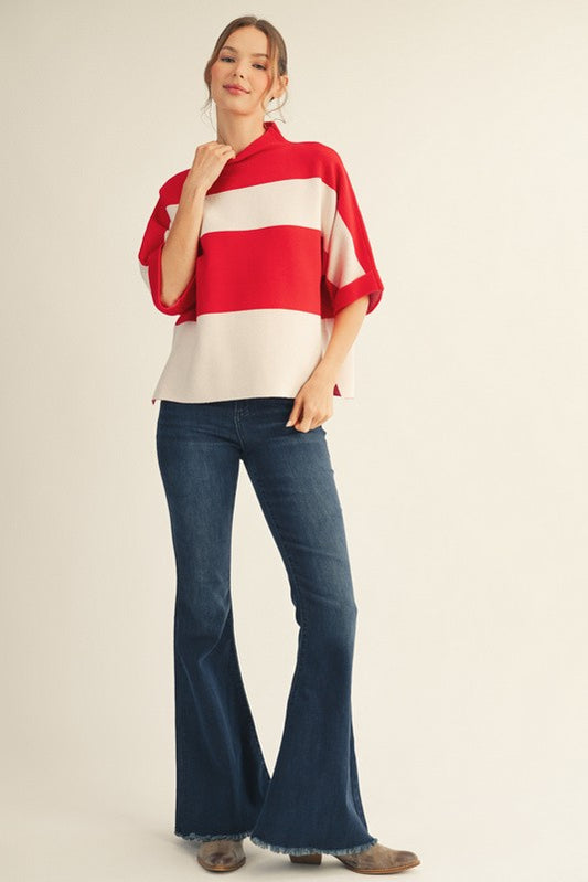 Sold outStriped High Lo Turtle Neck Sweater