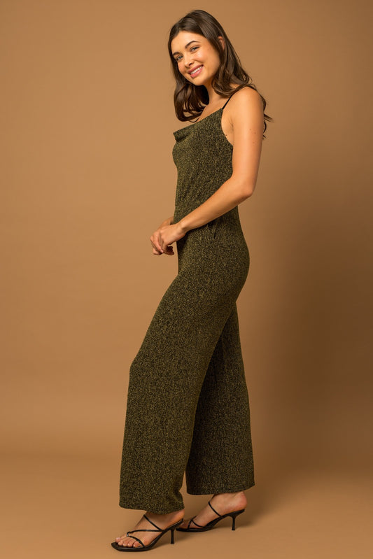 Criss Cross Strap Cowl Neck Lurex Jumpsuit