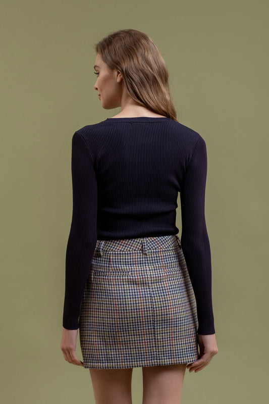 Multi-Color Stitch Tab Sleeve Knit Top
