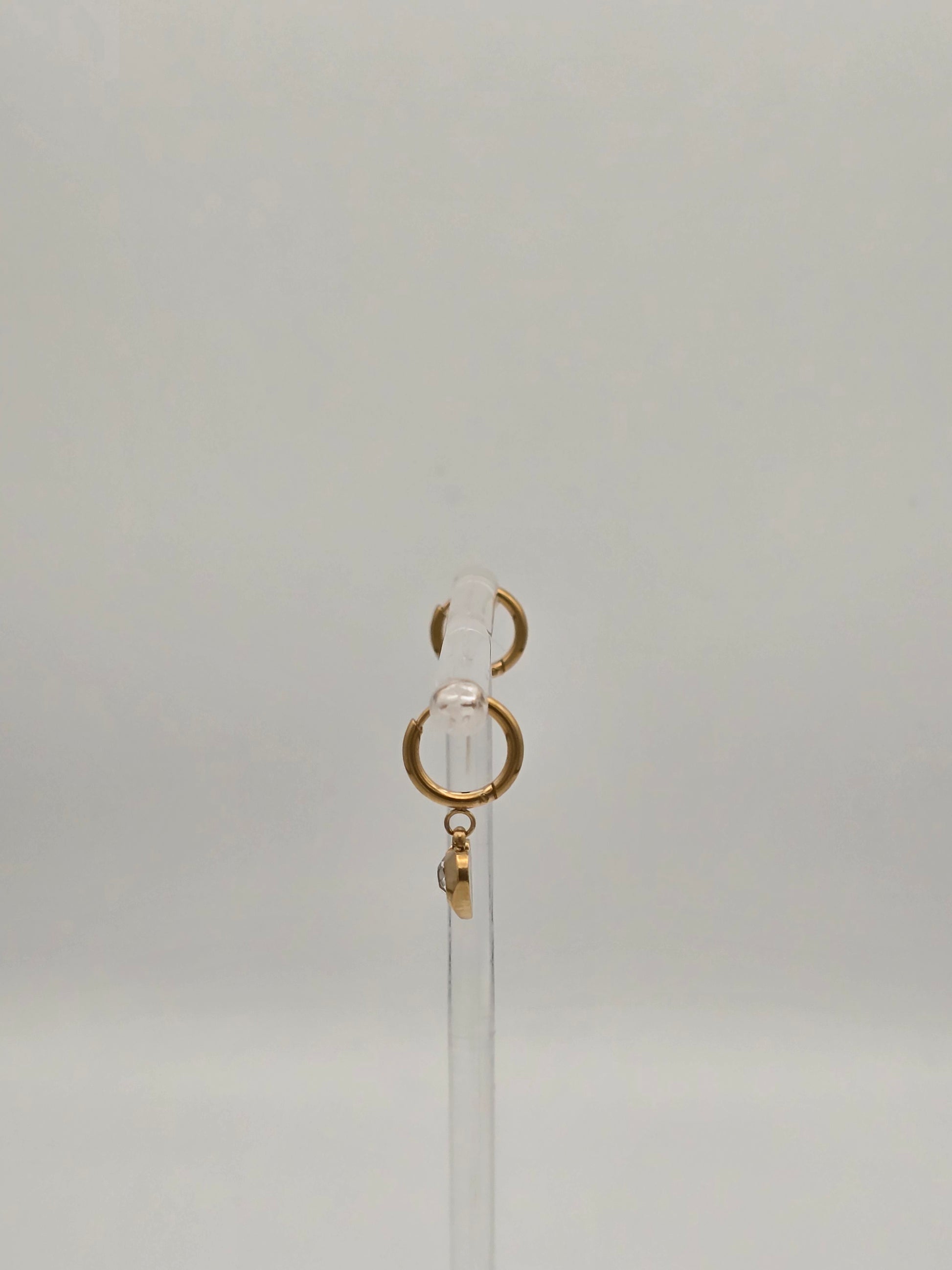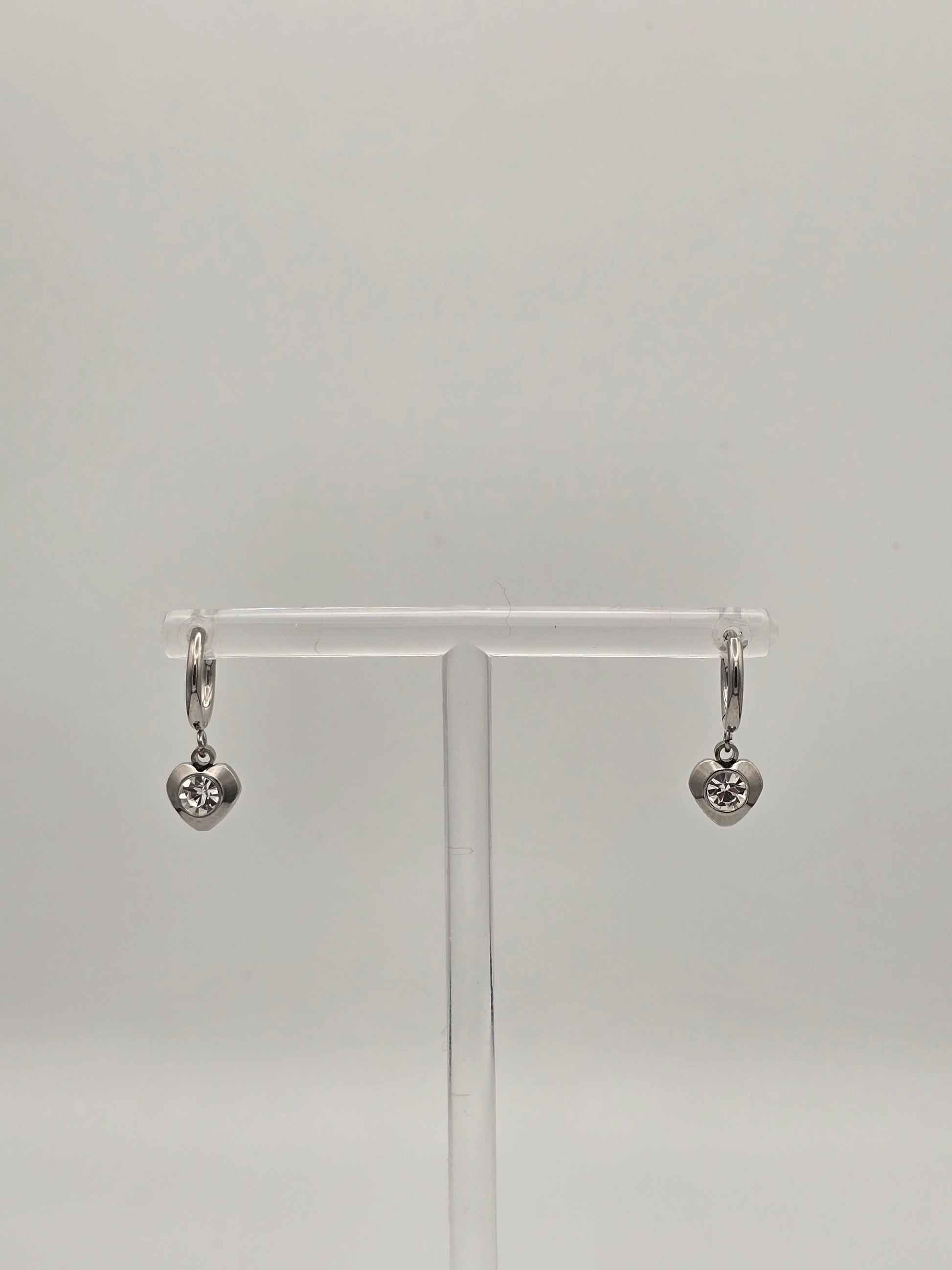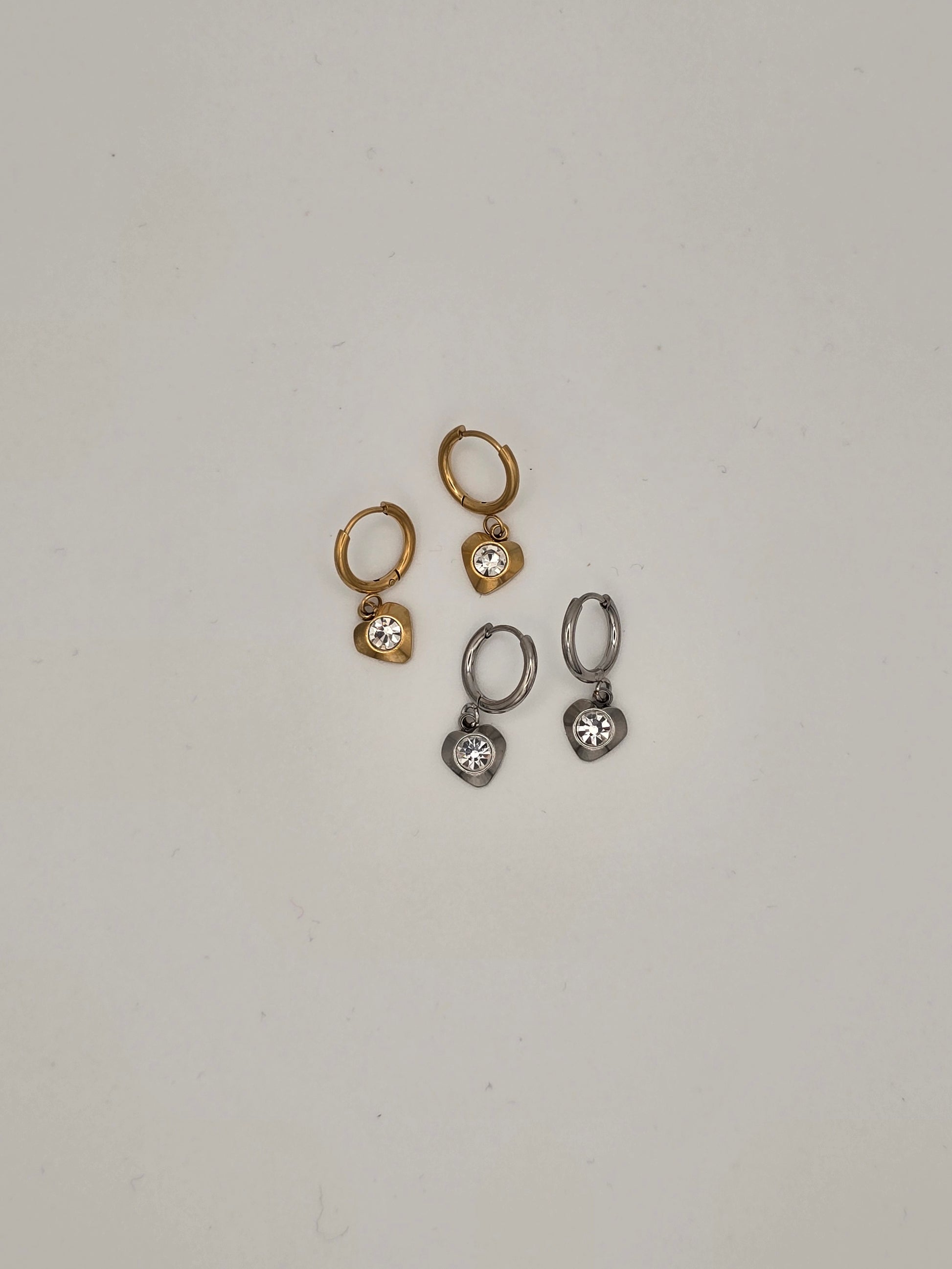 Tiny treasures that pack a punch! These delicate hoop earrings feature a charming dangling heart with a sparkling center that catches the light beautifully. Crafted from durable stainless steel, they're perfect for everyday wear or special occasions. Choose between warm gold or cool silver to match your style. Small, lightweight, and endlessly versatile—your new go-to accessory.
