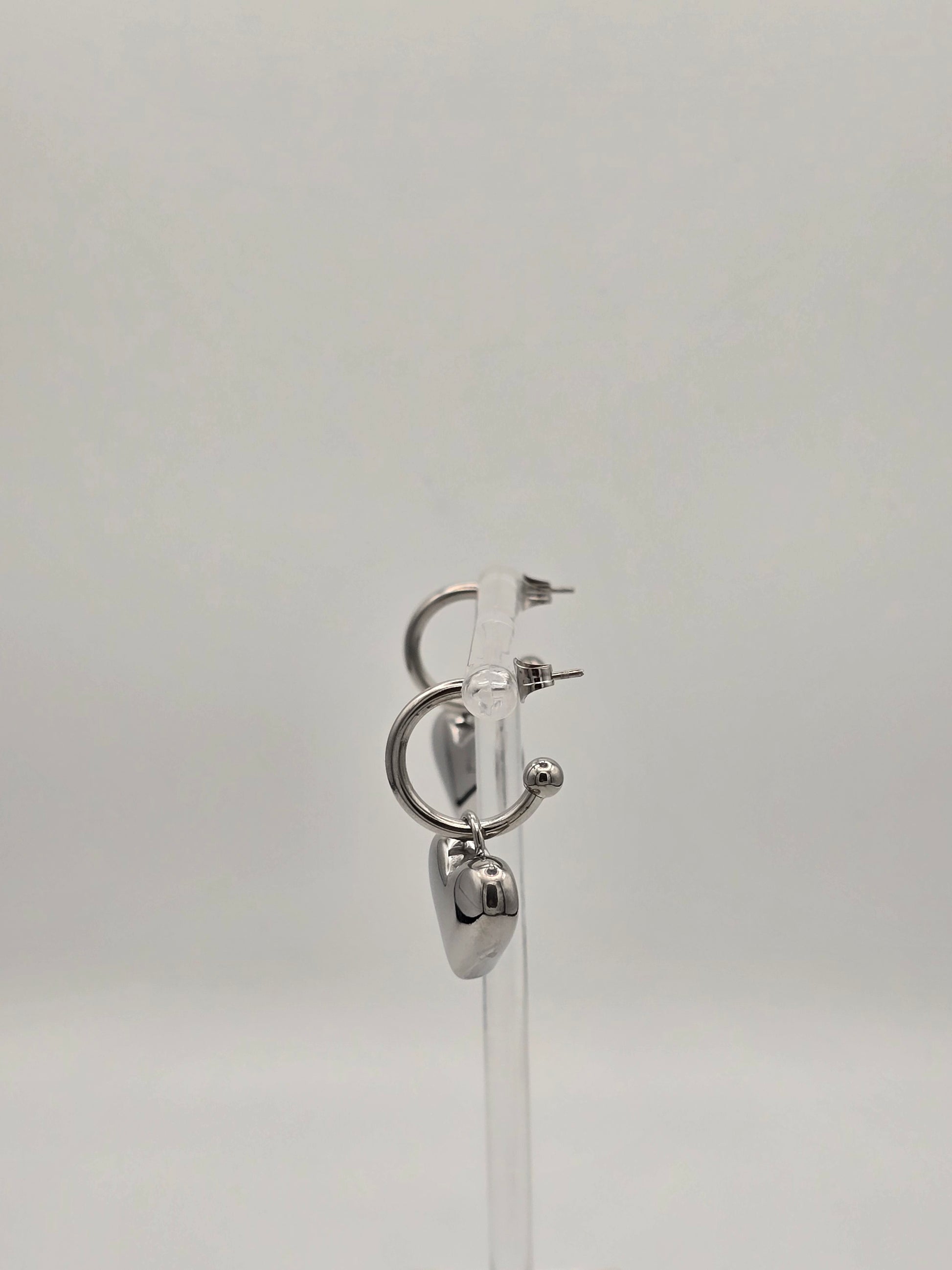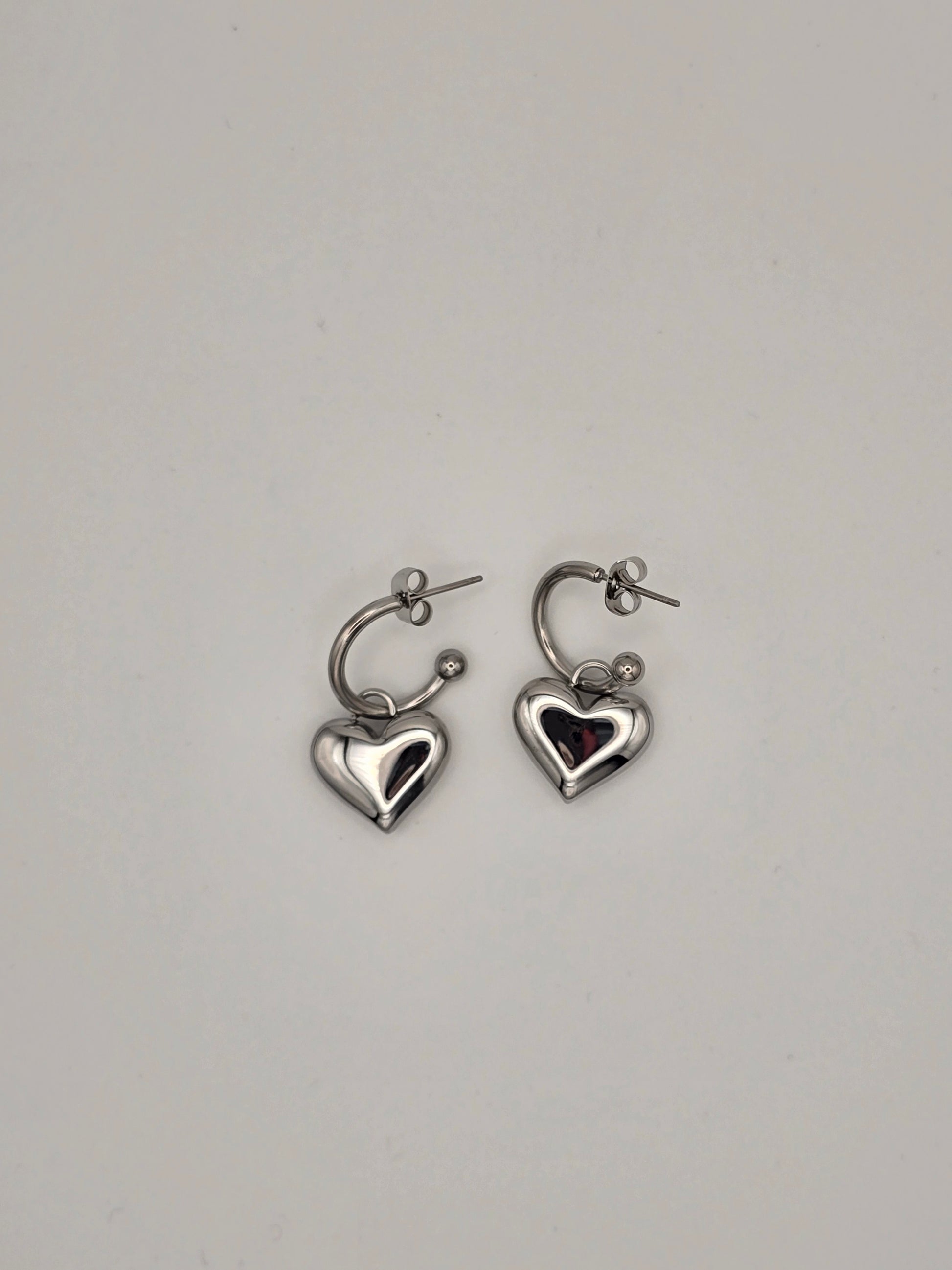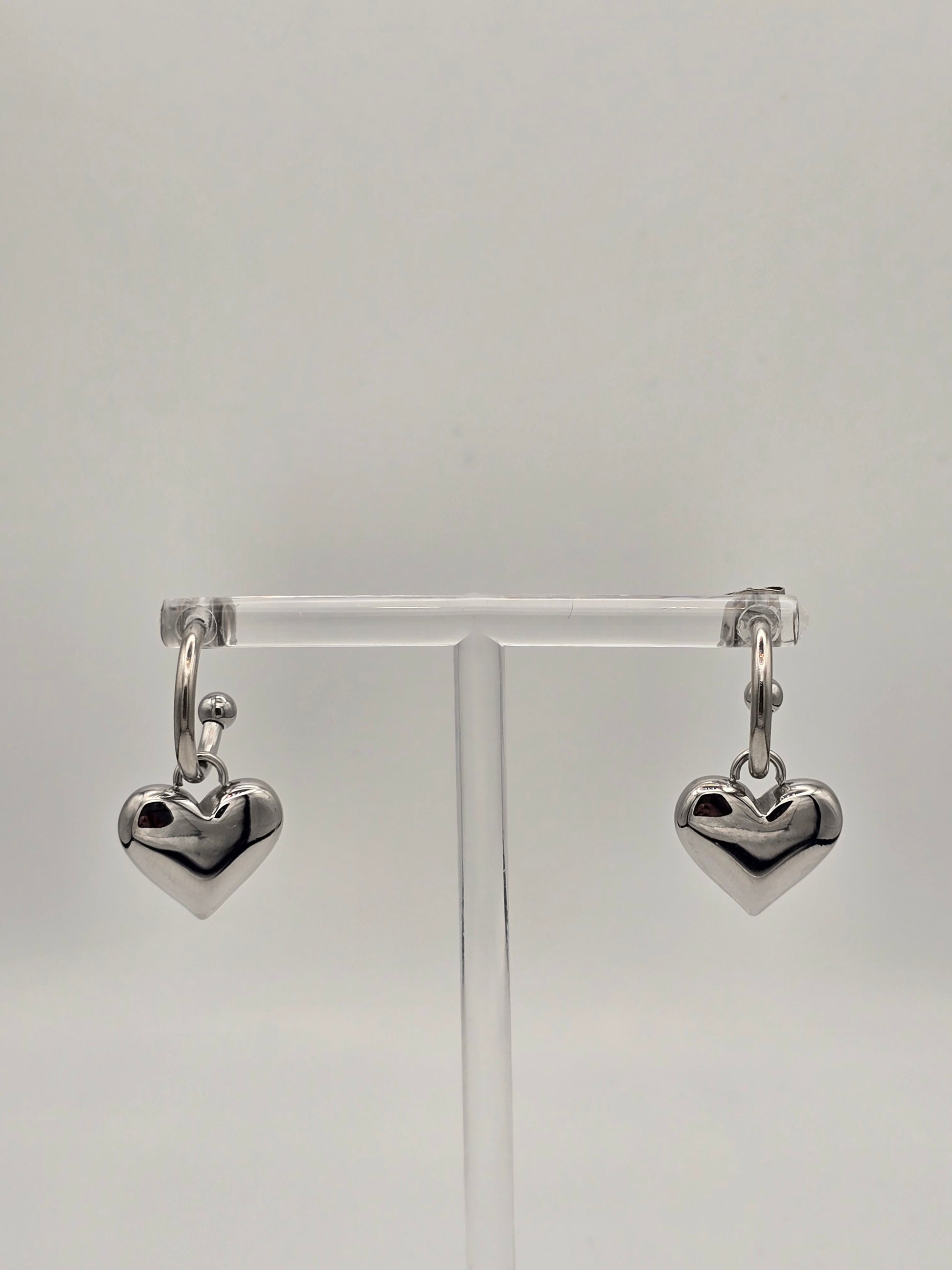 Make a statement with these eye-catching stainless steel hoop earrings! Each pair features a chunky, removable puffy heart charm that lets you switch up your look whenever the mood strikes. Available in gleaming gold or silver finishes, they're crafted from durable stainless steel with a secure stud back for all-day comfort. Perfect for adding a touch of playful romance to any outfit—mix, match, and express yourself!
