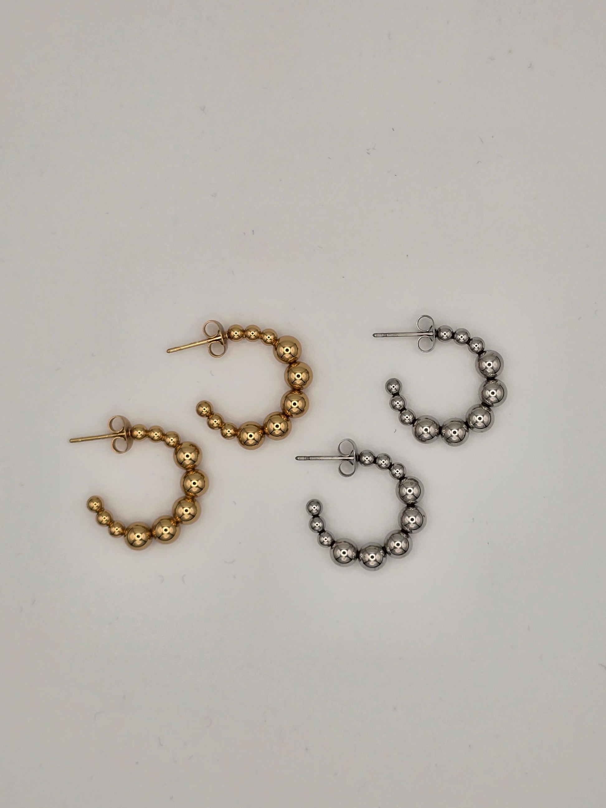 Meet your new go-to earrings! These adorable hoops pack personality with a playful little ball detail design and dependable stud backs that stay put all day long. Crafted from durable stainless steel, they're available in gleaming gold or sleek silver—pick your favorite and let your ears do the talking. Simple, sweet, and seriously stylish.