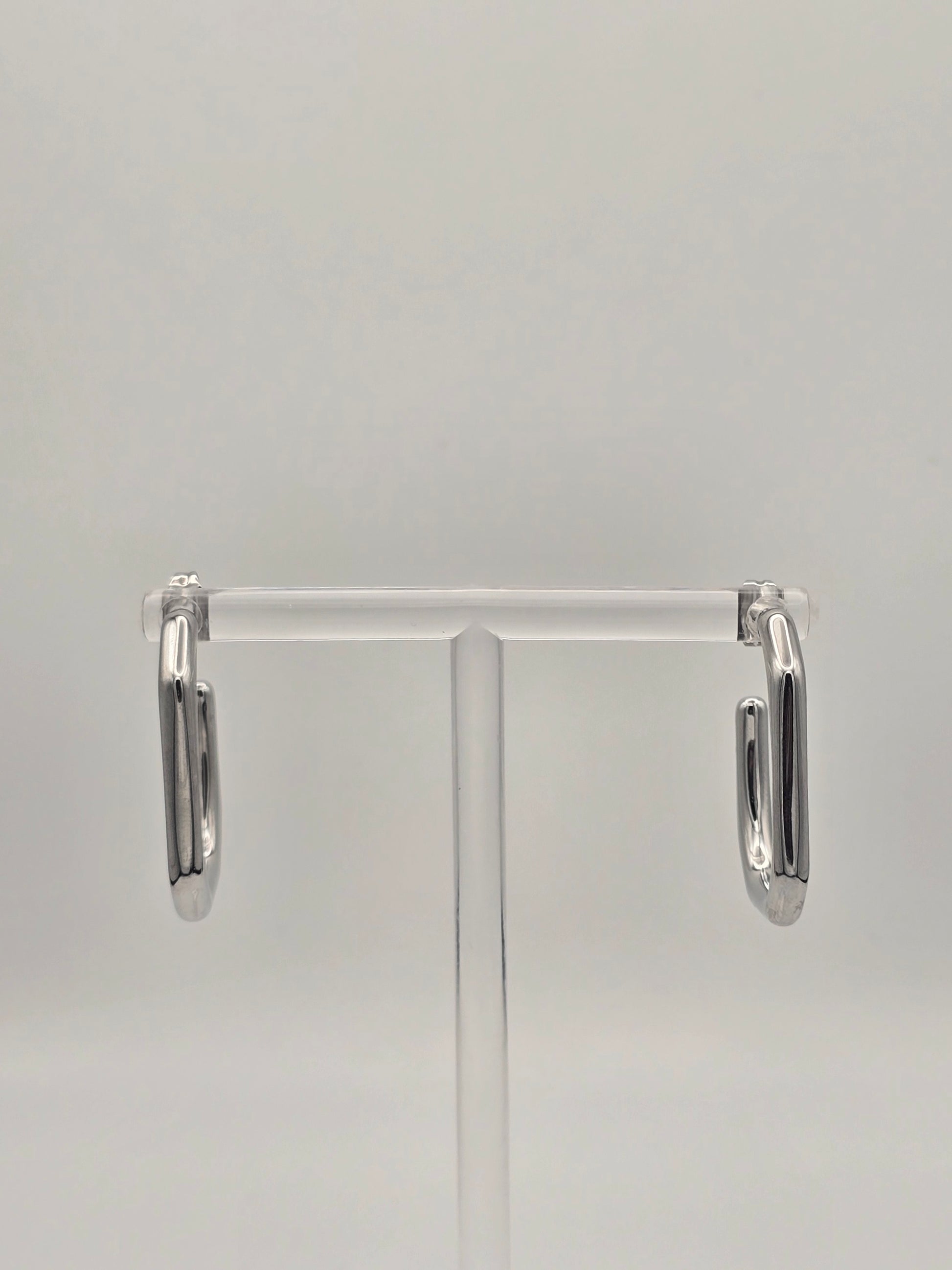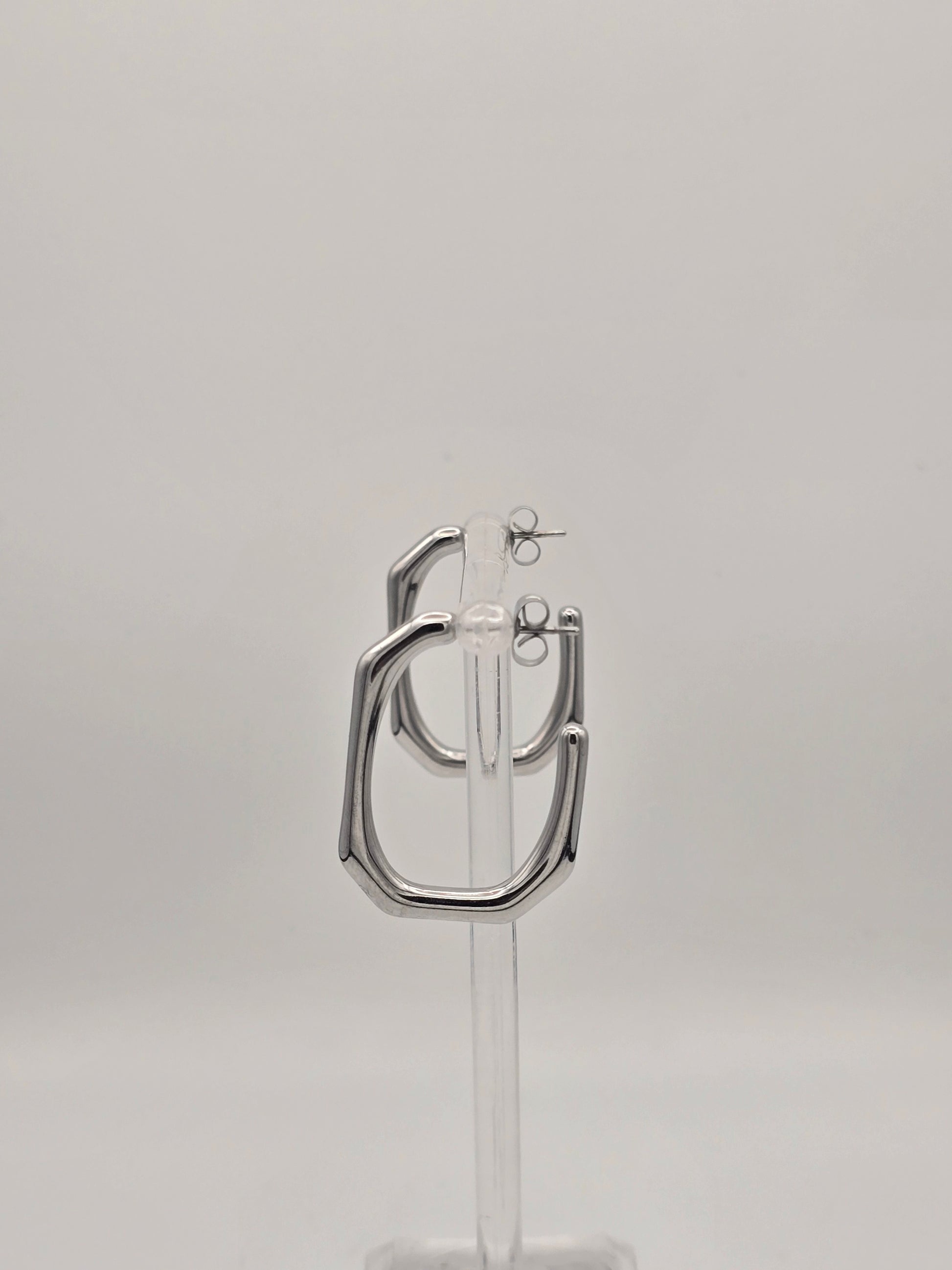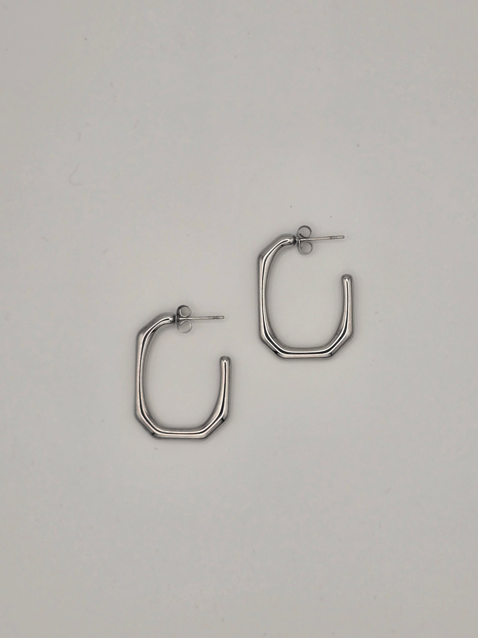 These sleek geometric hoops bring instant edge to any look! Crafted from durable stainless steel with a polished silver finish, they're the perfect medium-sized statement piece that won't tarnish or fade. The secure stud back keeps them comfortably in place all day long, whether you're running errands or heading out for the evening. Simple, chic, and endlessly versatile—your new go-to earrings are here!