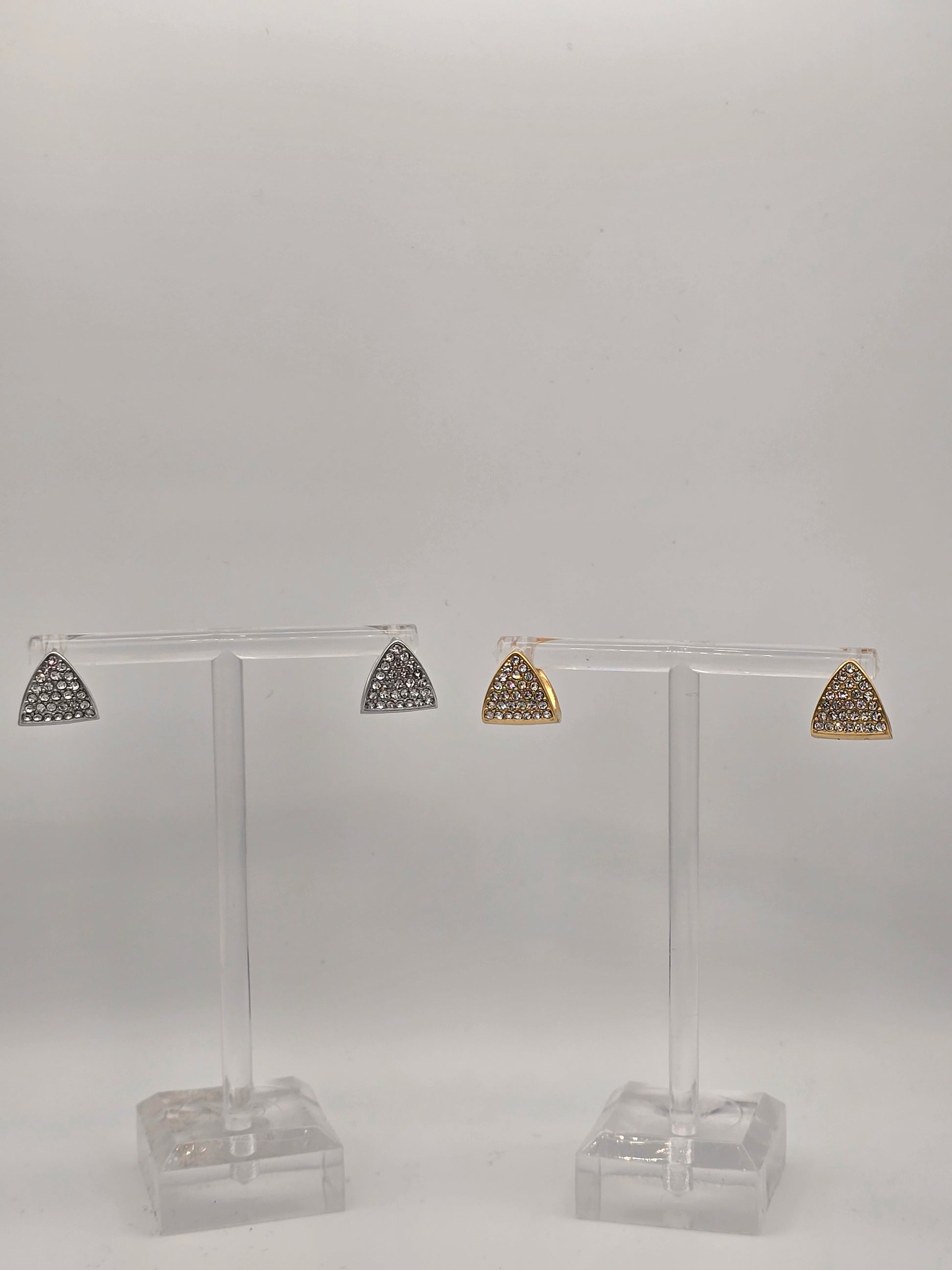 Elegant stainless steel cuff earrings featuring a distinctive triangle design that hugs your ear for a secure, comfortable fit. Crafted with a sparkling finish and available in both gold and silver, these small earrings are hypoallergenic and perfect for sensitive skin. The convenient hinge closure ensures they stay in place throughout your day. A versatile accessory that combines style with everyday wearability.